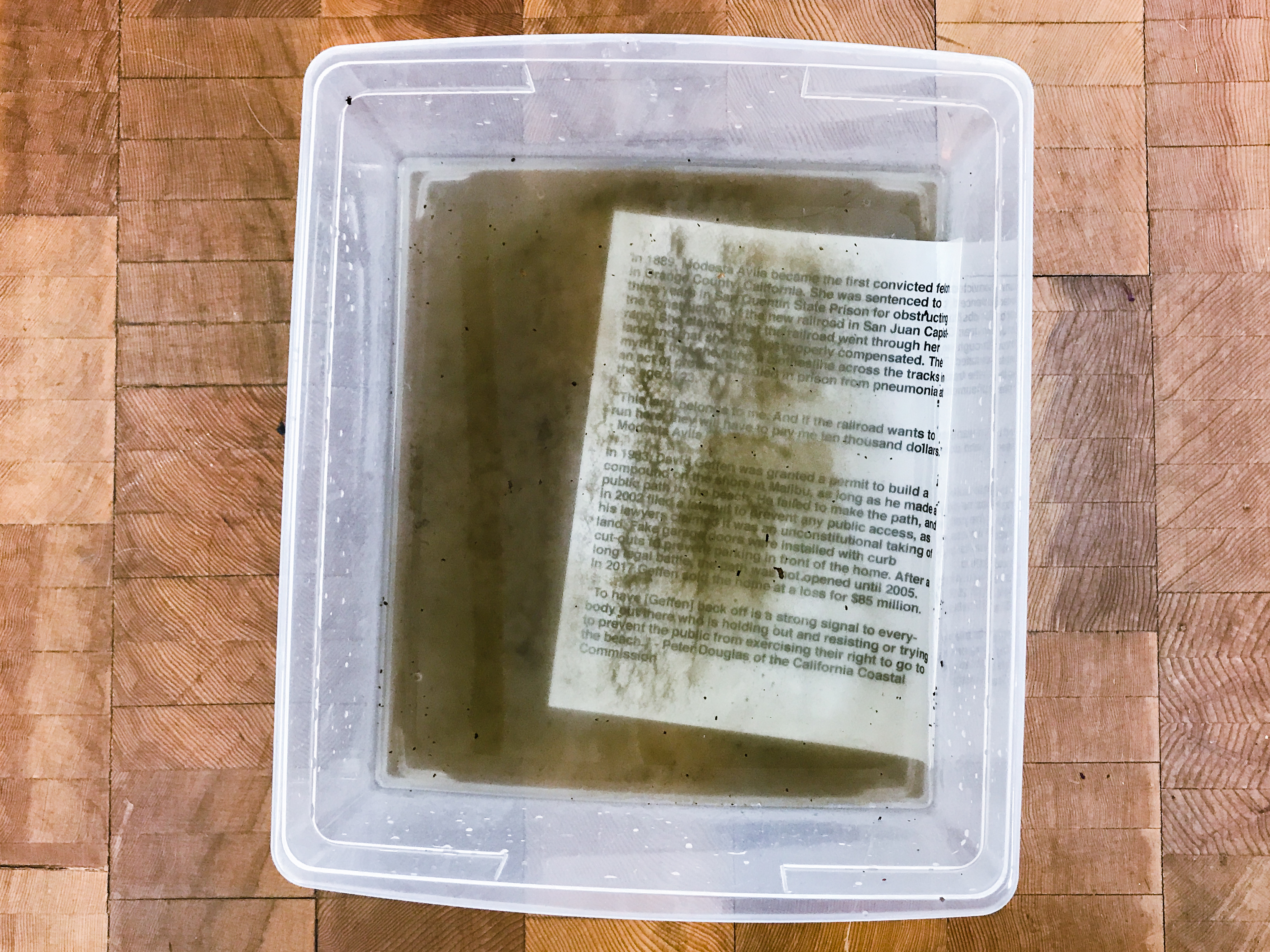 Performance using dirt from San Juan Capistrano and ocean water from Malibu